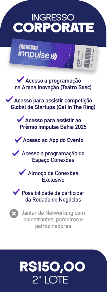 O Innpulse Forum nasceu para potencializar competências, conexões e oportunidades no ecossistema brasileiro de inovação e empreendedorismo, entregando não só conteúdo de alto valor, mas oportunidades e conexões reais, reconhecimento e geração de negócios.
